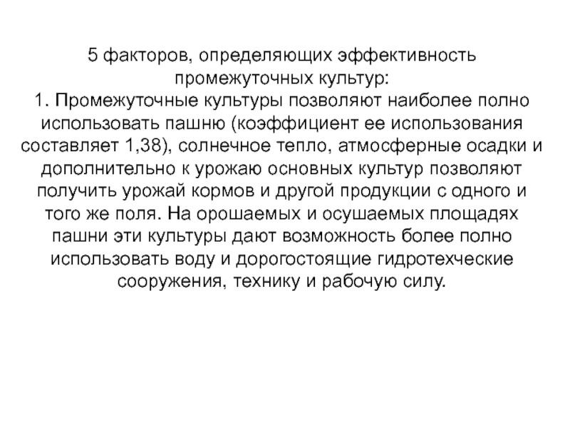 Слайд 355 факторов, определяющих эффективность промежуточных культур: