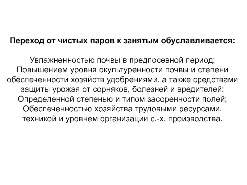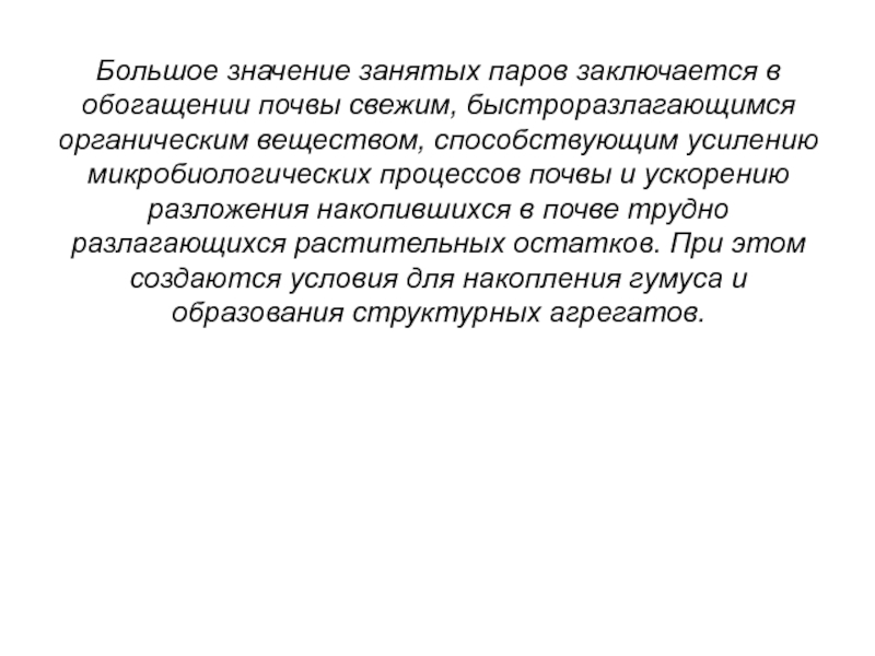 Слайд 12Большое значение занятых паров заключается в обогащении почвы свежим, быстроразлагающимся