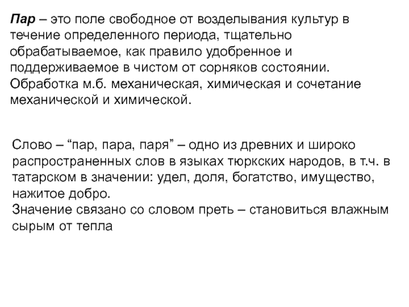 Слайд 5Пар – это поле свободное от возделывания культур в течение