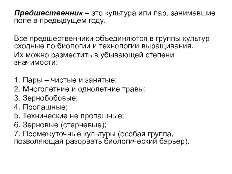Слайд 4Предшественник – это культура или пар, занимавшие поле в предыдущем