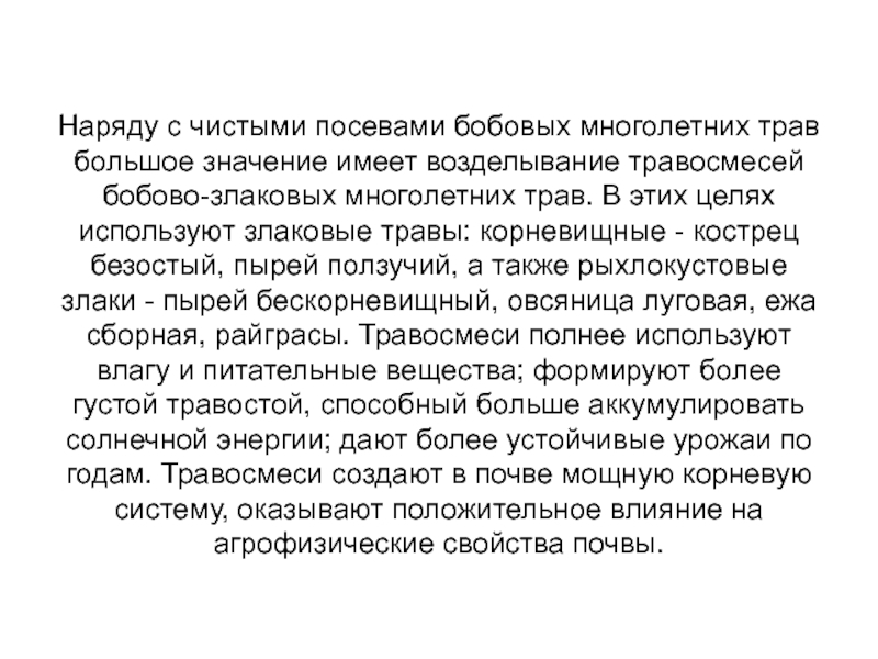 Слайд 23Наряду с чистыми посевами бобовых многолетних трав большое значение имеет