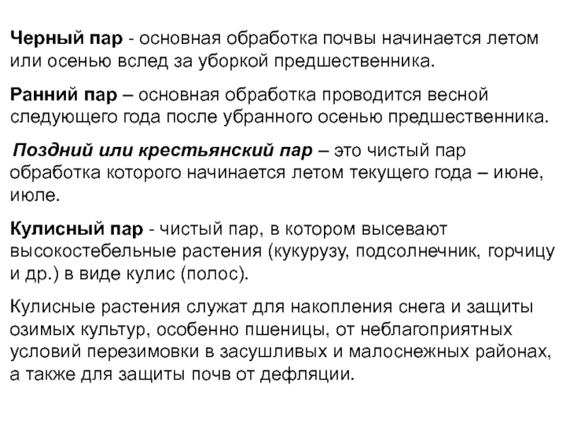 Поздний или крестьянский пар – это чистый пар обработка которого начинается летом текущего года – июне, июле.