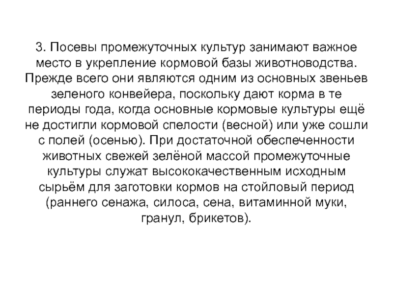 Слайд 373. Посевы промежуточных культур занимают важное место в укрепление кормовой