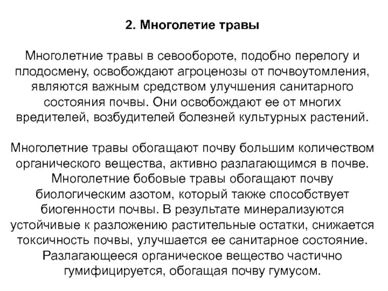 освобождают агроценозы от почвоутомления, являются важным средством улучшения санитарного состояния