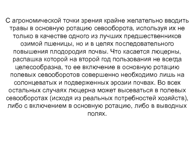 Слайд 21С агрономической точки зрения крайне желательно вводить травы в основную