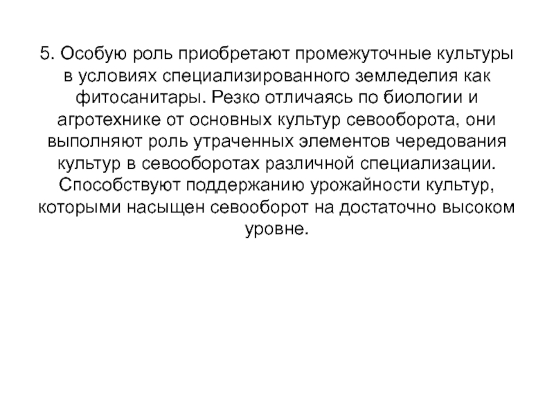 Слайд 395. Особую роль приобретают промежуточные культуры в условиях специализированного земледелия
