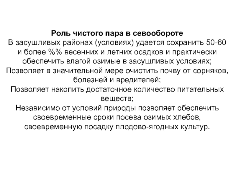 и севера на юг, а занятого пара наоборот. Преимущество чистых паров перед занятыми проявляется в засушливых и полузасушливых районах.