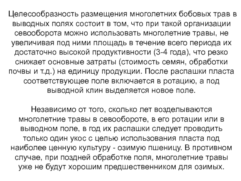 Слайд 22Целесообразность размещения многолетних бобовых трав в выводных полях состоит в