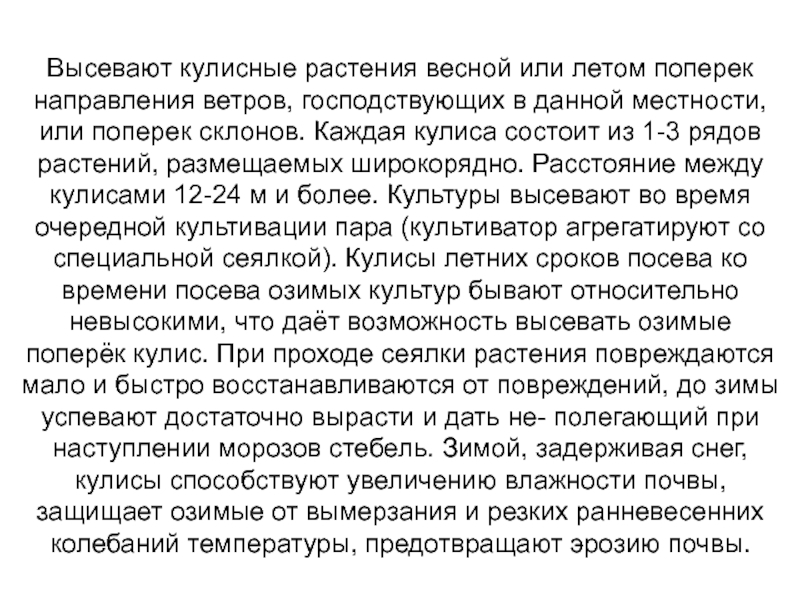 Слайд 10Высевают кулисные растения весной или летом поперек направления ветров, господствующих