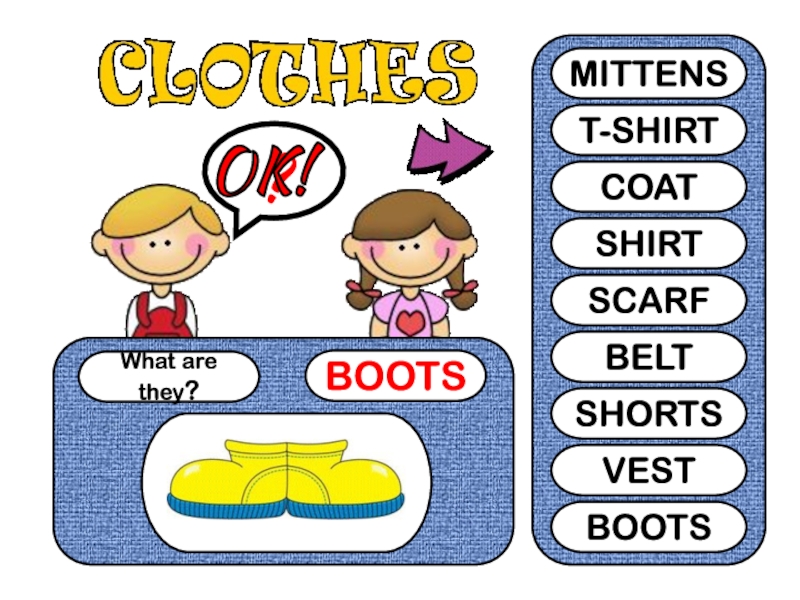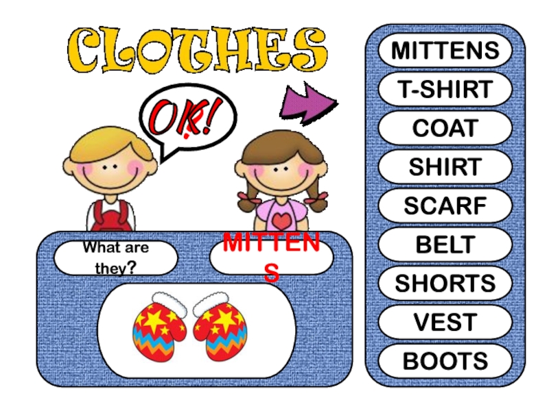 What are they?VEST?MITTENST-SHIRTCOATSHIRTSCARFBELTSHORTSVESTBOOTSOK!
