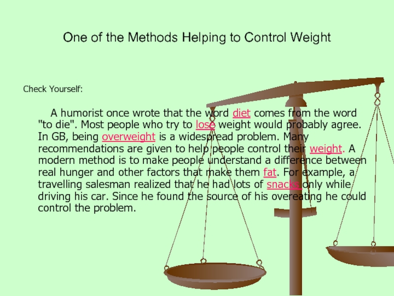 Слайд 18One of the Methods Helping to Control Weight