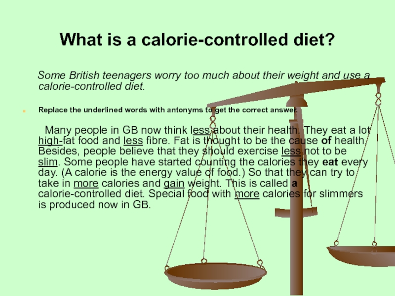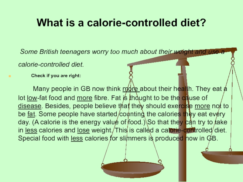 Слайд 15What is a calorie-controlled diet?