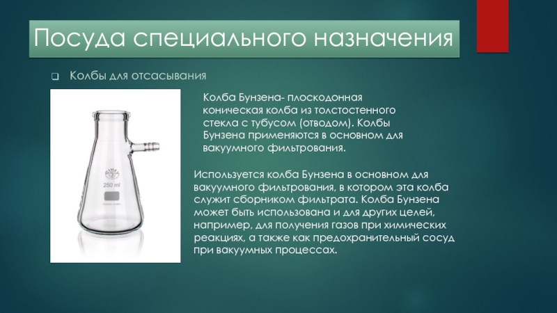 толстостенного стекла с тубусом (отводом). Колбы Бунзена применяются в основном