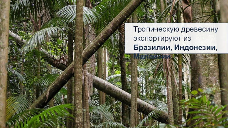 Слайд 21Тропическую древесину экспортируют из Бразилии, Индонезии, Малайзии.