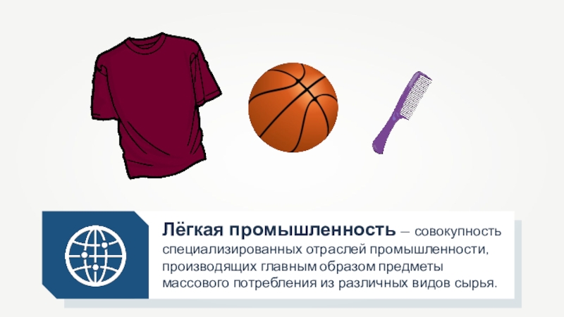 Слайд 23Лёгкая промышленность — совокупность специализированных отраслей промышленности, производящих главным образом предметы