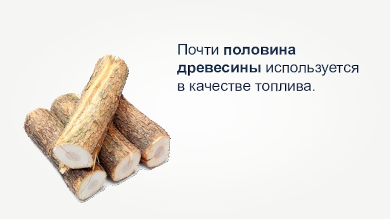 Слайд 16Почти половина древесины используется в качестве топлива.