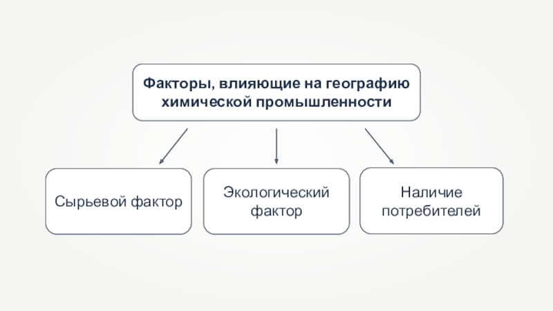 Факторы, влияющие на географию химической промышленностиСырьевой факторНаличие потребителейЭкологический фактор