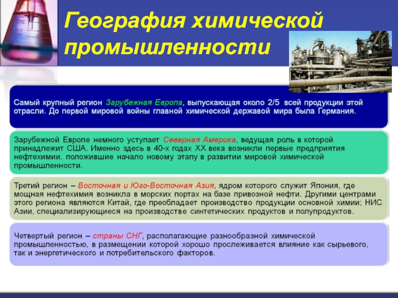 В мировой химической промышленности сложились четыре главных региона: