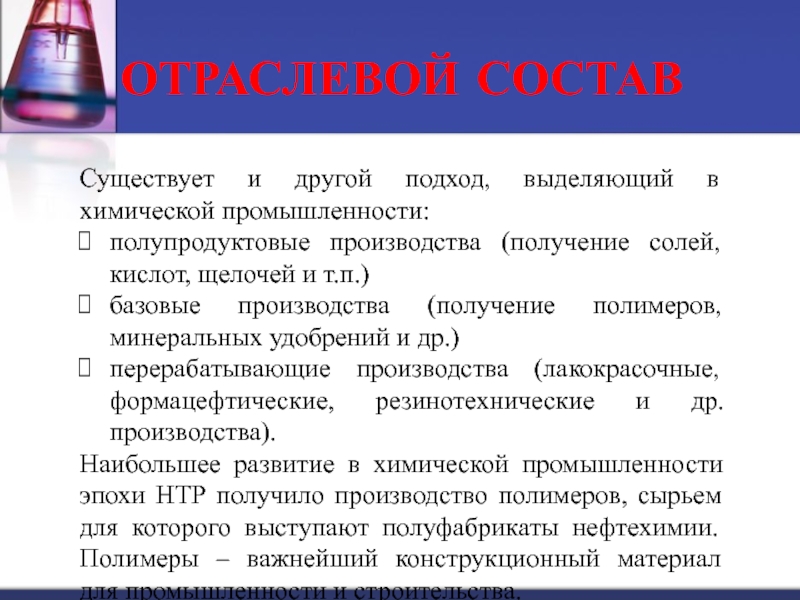 Существует и другой подход, выделяющий в химической промышленности: