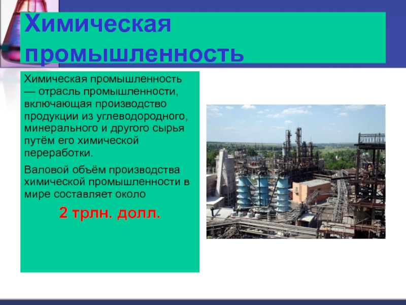 Химическая промышленность — отрасль промышленности, включающая производство продукции из
