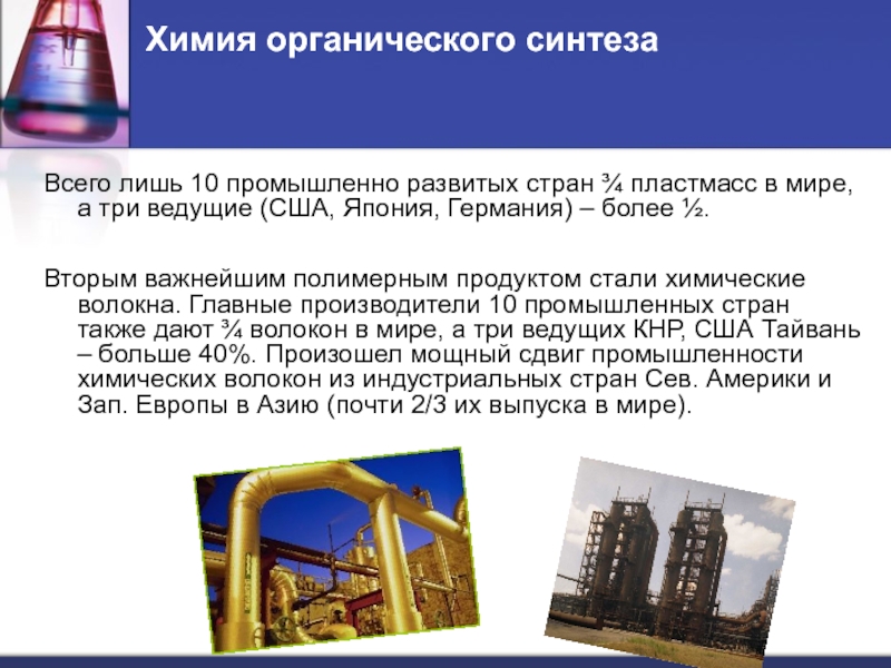 Промышленно развитые страны все больше специализируются на выпуске новейших наукоемких видов химической продукции.