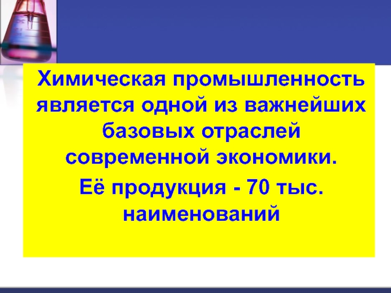 Слайд 2Химическая промышленность является одной из важнейших базовых отраслей современной экономики.