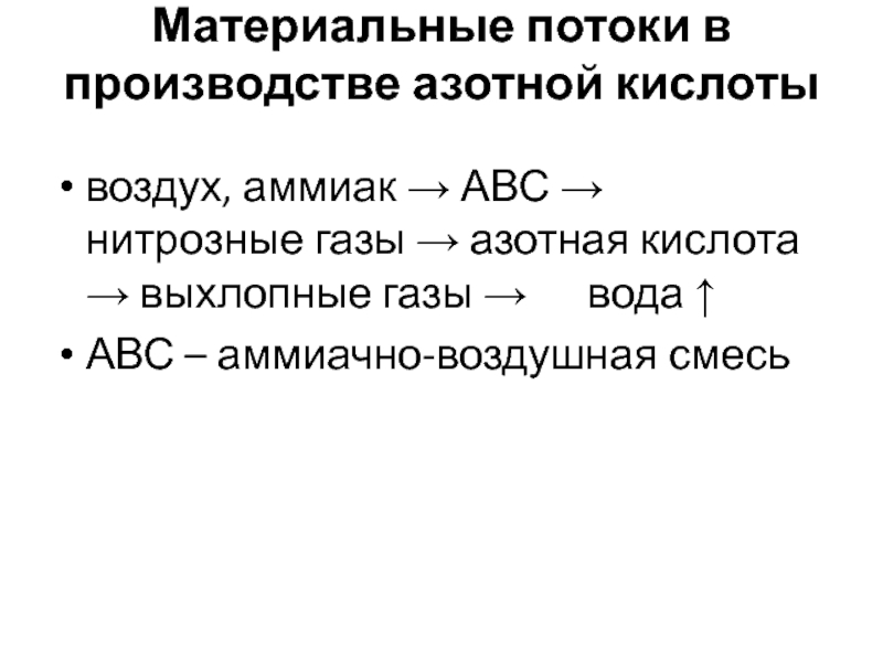 Слайд 3Материальные потоки в производстве азотной кислоты
