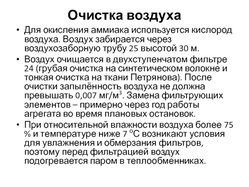 Для окисления аммиака используется кислород воздуха. Воздух забирается через