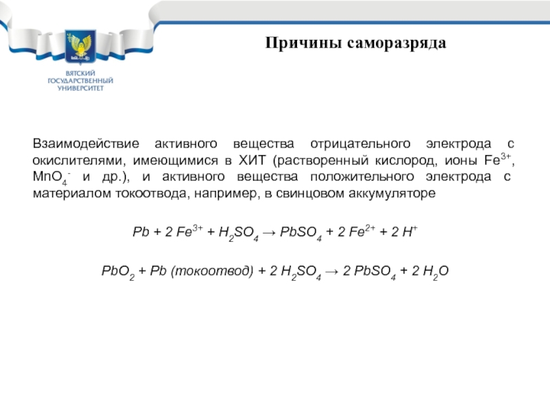 Причина – анодное растворение сурьмяной составляющей решеток при длительном заряде с образованием ионов Sb (III) и Sb (V), их последующая диффузия к (-) электродам и катодное восстановление ионов сурьмы на (-) электроде в виде мелкодисперсного порошка (на предельном токе).