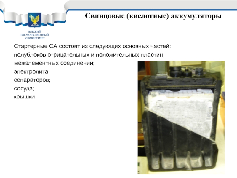 Слайд 51Свинцовые (кислотные) аккумуляторы