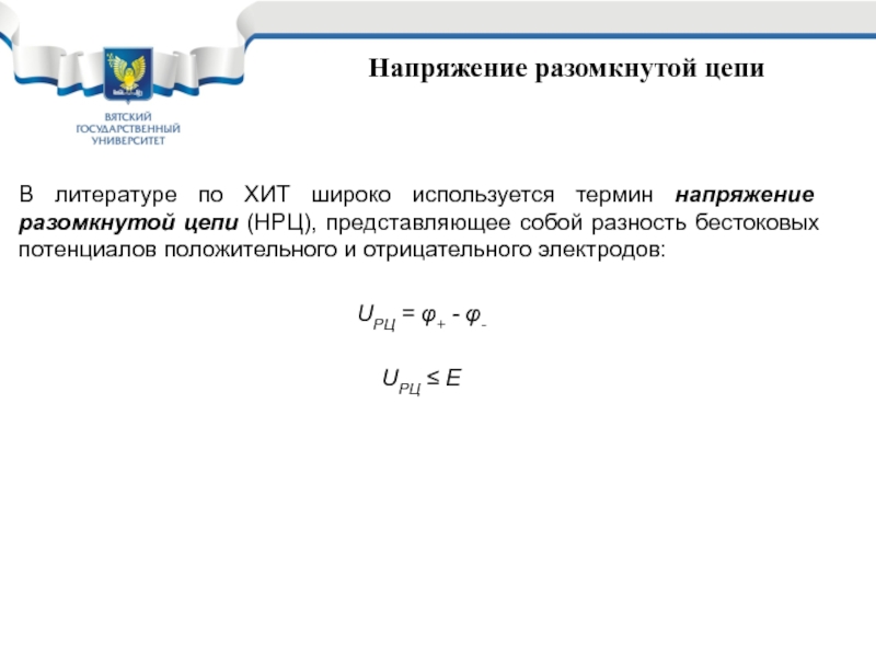 разомкнутой цепи (НРЦ), представляющее собой разность бестоковых потенциалов положительного и