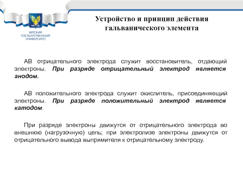 отдающий электроны. При разряде отрицательный электрод является анодом.