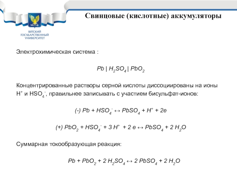 Слайд 43Свинцовые (кислотные) аккумуляторы