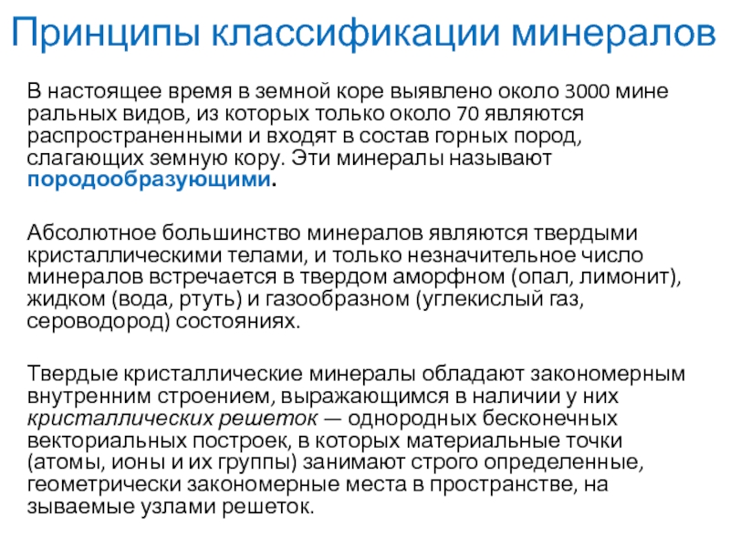 распространенными и входят в состав горных пород, слагающих земную кору. Эти минералы называют породообразующими.