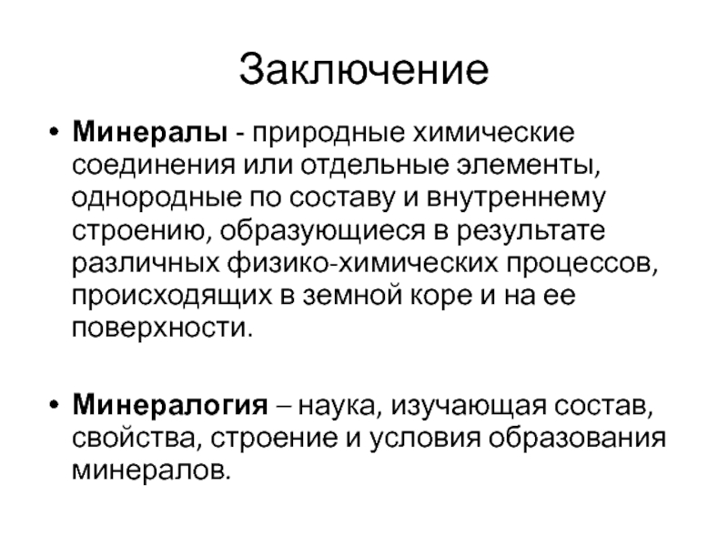 Минералы - природные химические соединения или отдельные элементы, однородные по