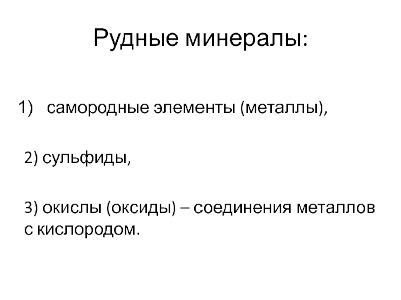 К этой группе рудных минералов относятся также многочисленные селенистые, теллуристые, мышьяковистые и сурьмянистые соединения, среди которых много важных в промышленном отношении минералов.