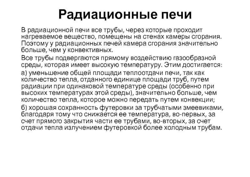 вещество, помещены на стенах камеры сгорания. Поэтому у радиационных печей