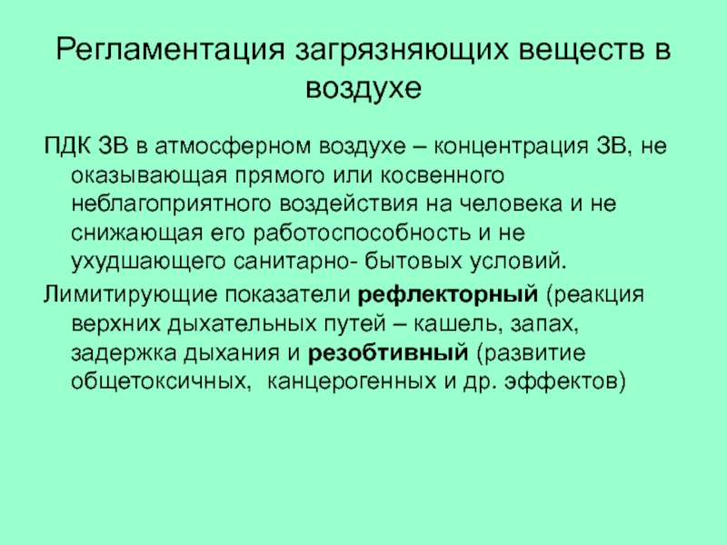 Слайд 4Регламентация загрязняющих веществ в воздухе