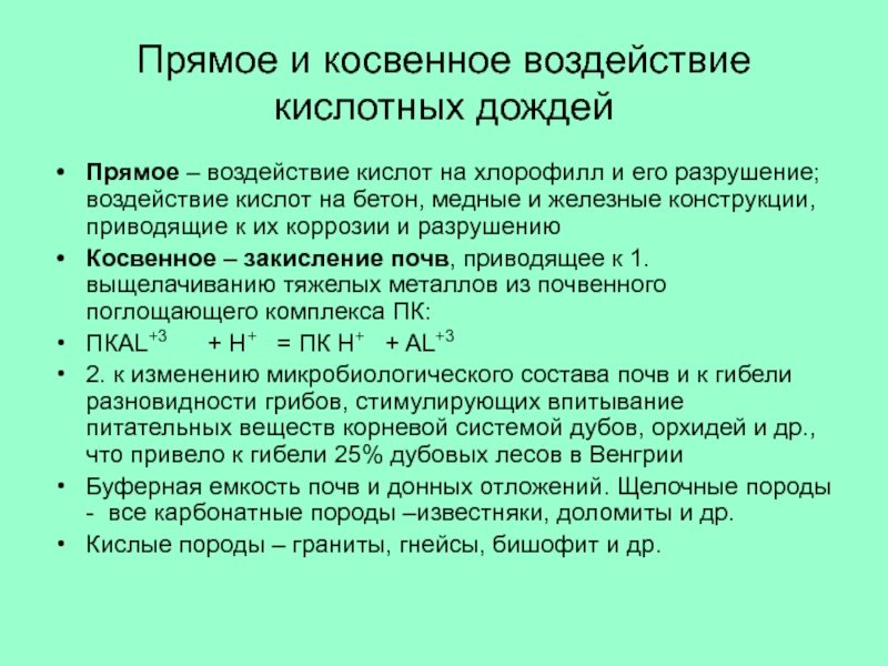 Слайд 12Прямое и косвенное воздействие кислотных дождей