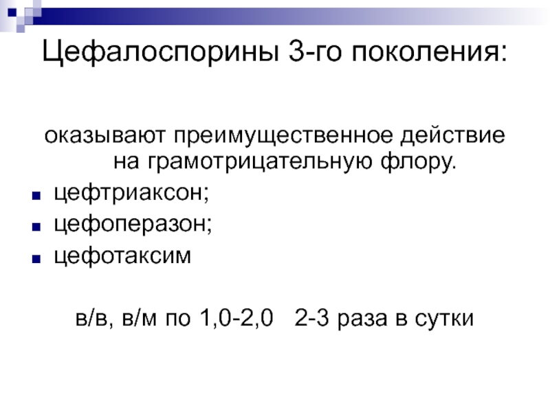 4. дисбактериоз и суперинфекция (выражены у препаратов 2-го и 3-го поколений);