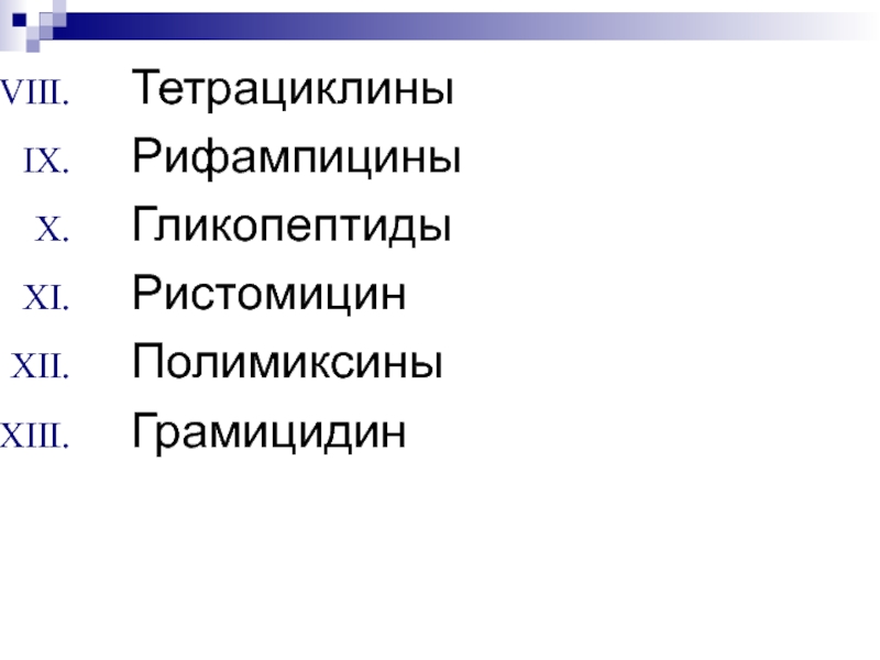 Пенициллины, цефалоспорины, аминогликозиды, полимиксины
