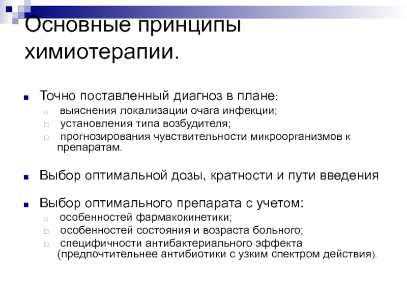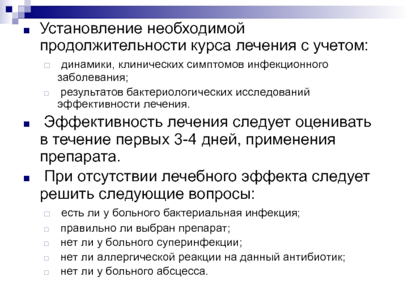 специфичности антибактериального эффекта (предпочтительнее антибиотики с узким спектром действия).