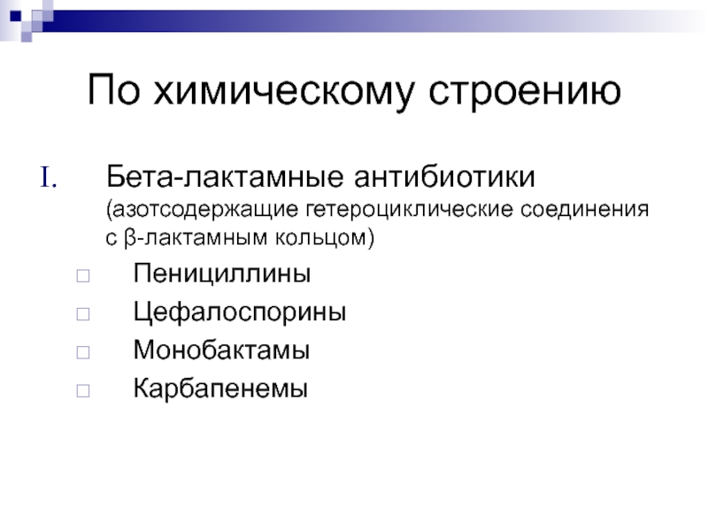 Бета-лактамные антибиотики (азотсодержащие гетероциклические соединения с -лактамным