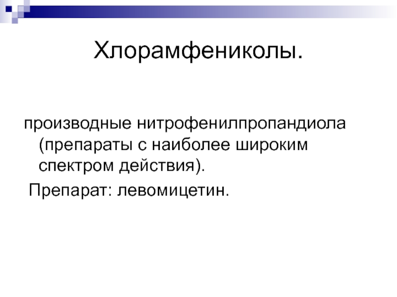 производные нитрофенилпропандиола (препараты с наиболее широким спектром действия).