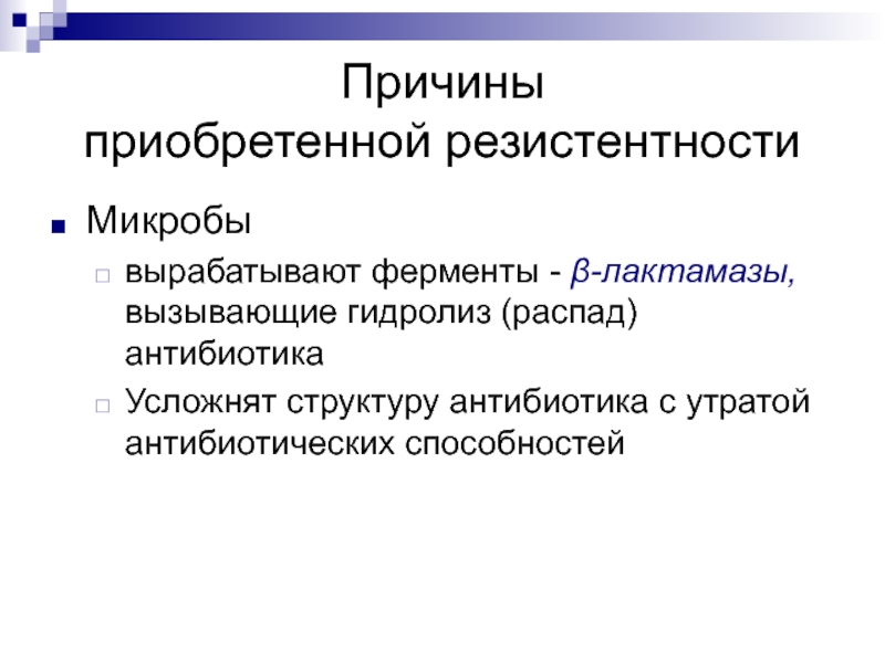 вырабатывают ферменты - -лактамазы, вызывающие гидролиз (распад)