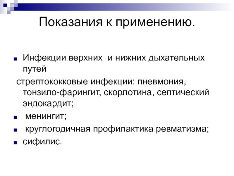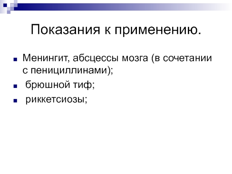 Менингит, абсцессы мозга (в сочетании с пенициллинами);