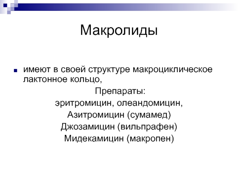 Макролиды (соединения, содержащие макроциклическое лактонное кольцо)