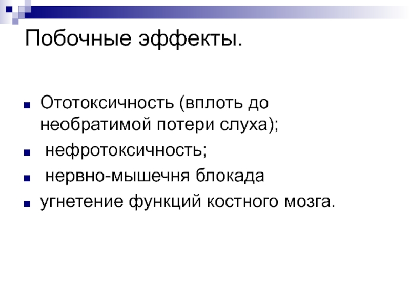 нефротоксичность (особенно выражена у препаратов 1-го поколения).
