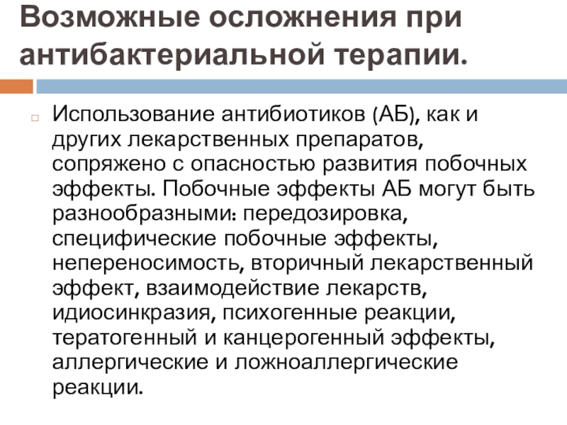 Слайд 9Возможные осложнения при антибактериальной терапии.