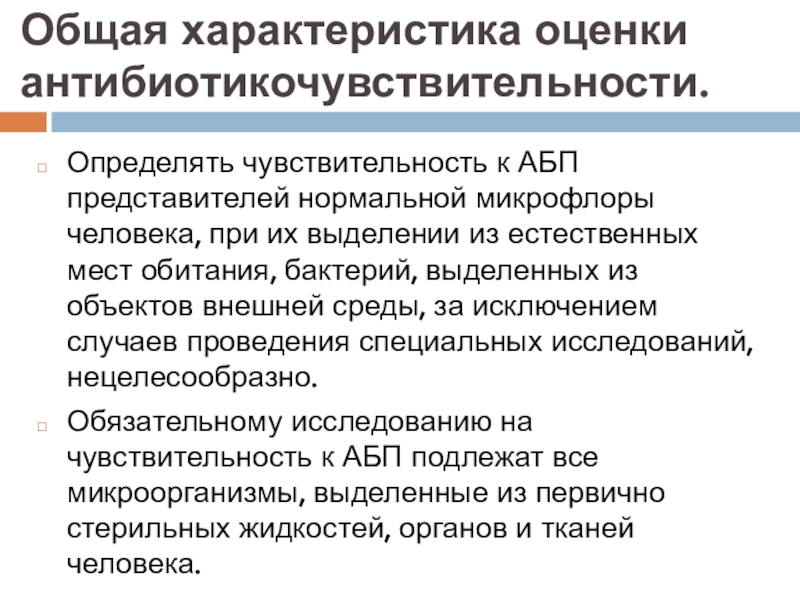 Слайд 11Общая характеристика оценки антибиотикочувствительности.
